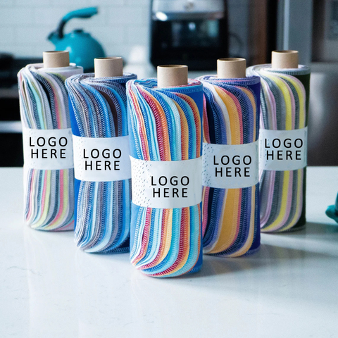 ผ้าขนหนูกระดาษแบบนำกลับมาใช้ใหม่ได้สำหรับห้องครัวชุดม้วนกระดาษเช็ดมือแบบซักได้เป็นมิตรกับสิ่งแวดล้อม