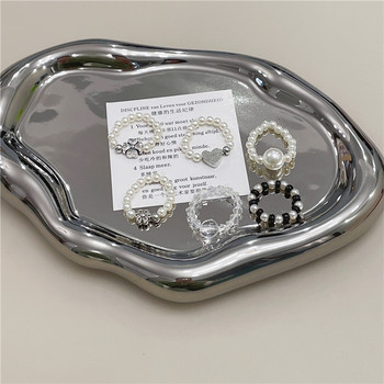 Cincin Kristal Gadis Mutiara Serbaguna, Cincin Manik-manik Semanggi Empat Daun Hati Geometris Retro Korea