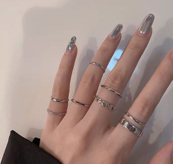 Cincin Keren Bergaya Korea 7 Set Cincin Perhiasan Pelajar Wanita, Cincin Jari Indeks Hip Hop Angin Dingin